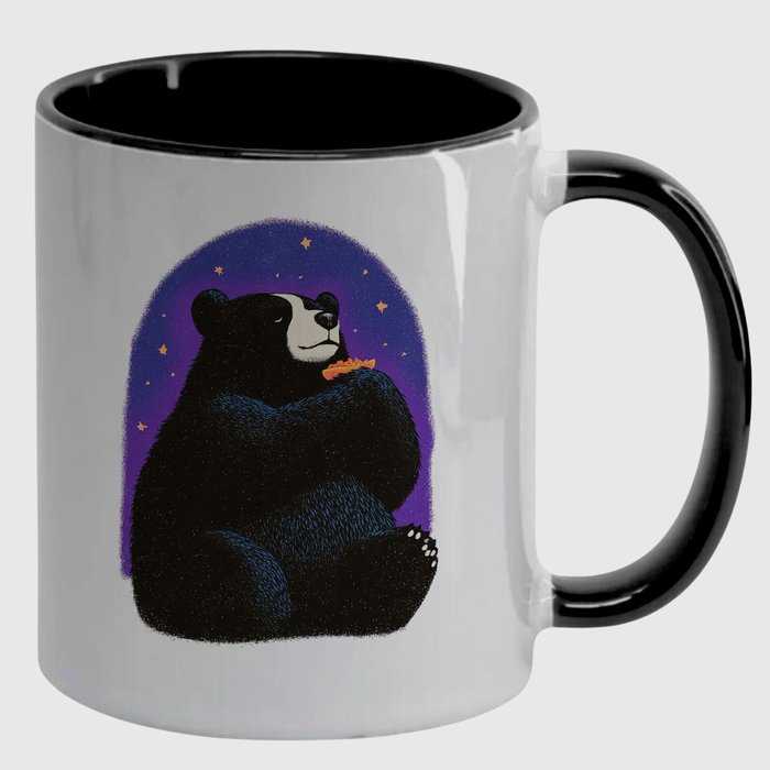 Caneca Branca com Interna Preta Y5 Urso Negro Dormindo Céu Estrelado 2