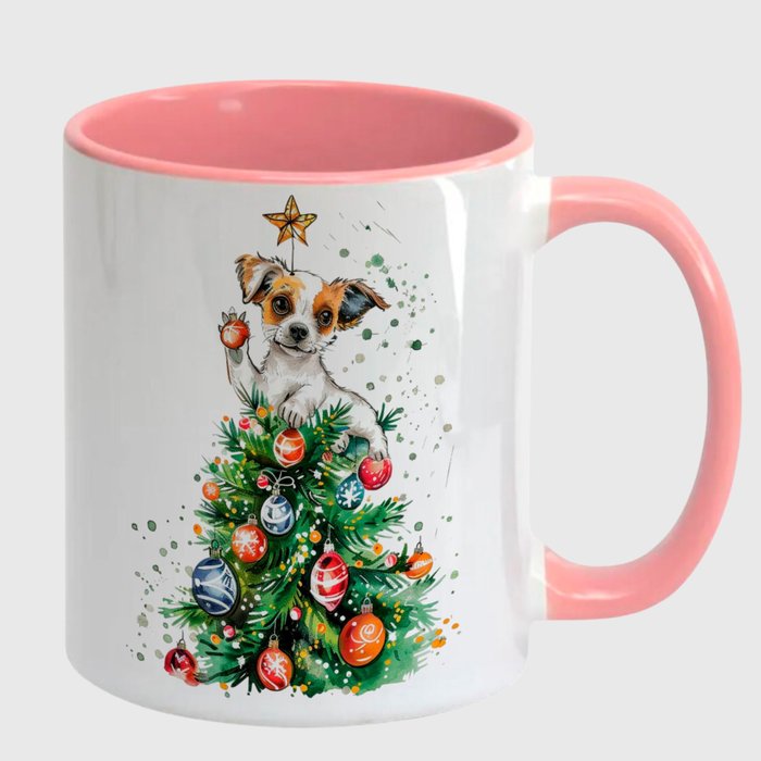 Caneca Branca com Interna Rosa Y4 Cachorro Dog Natal Arvore 7