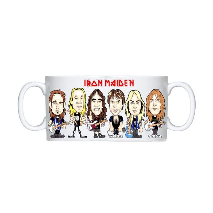 Caneca Branca de Bandas Rock Iron Maiden Caricatura Logo