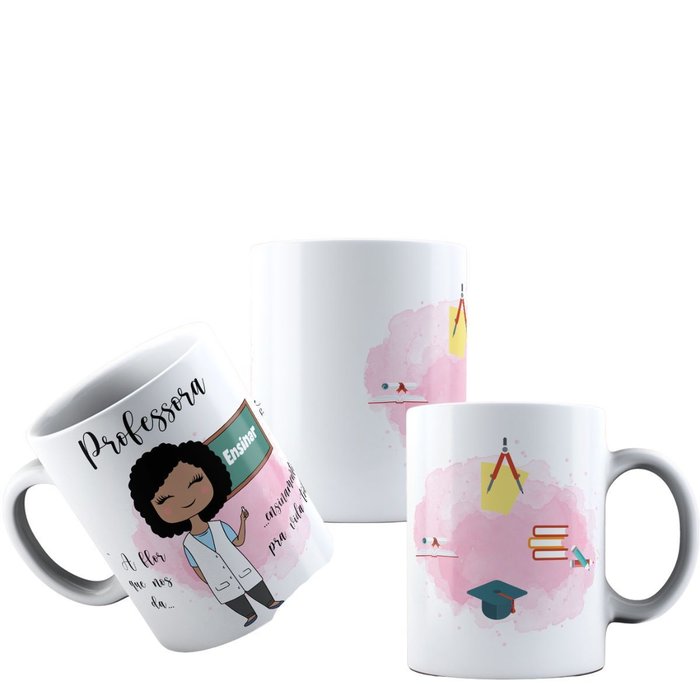 Caneca Branca de Porcelana Profissões Fofas Professora