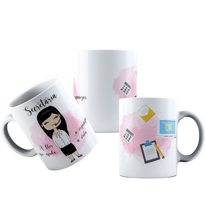 Caneca Branca de Porcelana Profissões Fofas Secretaria