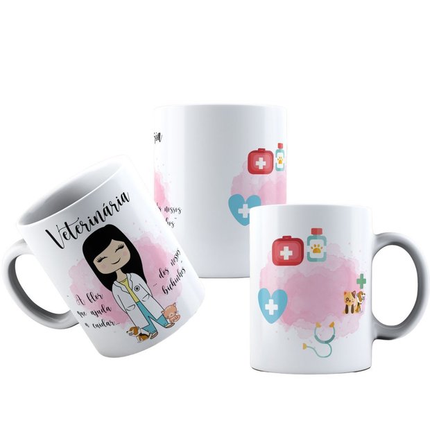 Caneca de porcelana de alto brilho, com alça e interior branca Coleção Profissões.