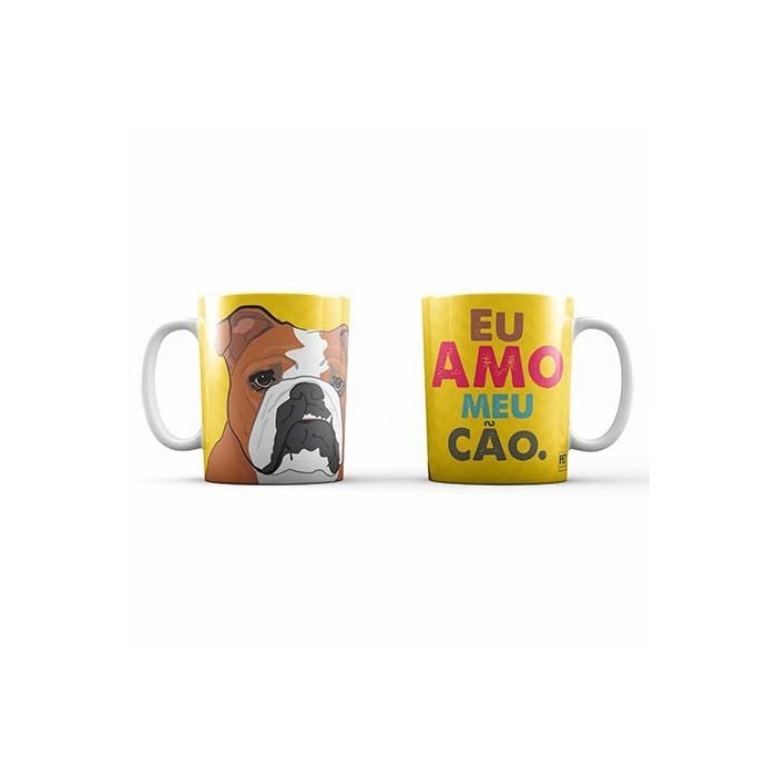 Caneca Bulldog Inglês - Buldogue - Vermelho e branco - 325ml - Cerâmica - Petquadros - Pet