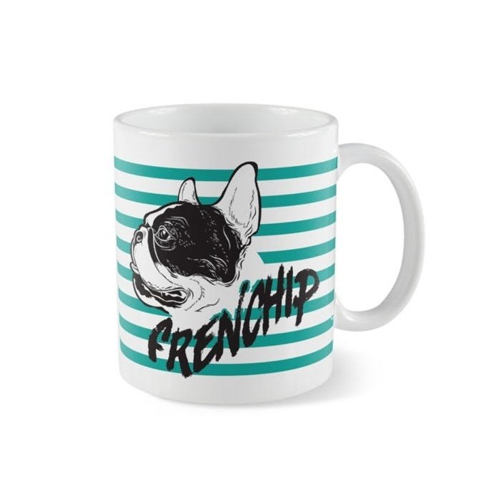 Essa Caneca é fabricada em Ceramica e possui capacidade para 320ml, vem com a estampa do simpatico dog Frenchip