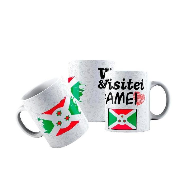 Caneca Cerâmica Bandeira Burundi Visitei e Amei Viagem