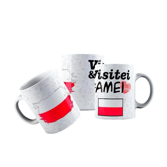 1x Caneca Cerâmica Bandeira Polônia Visitei E Amei Viagem