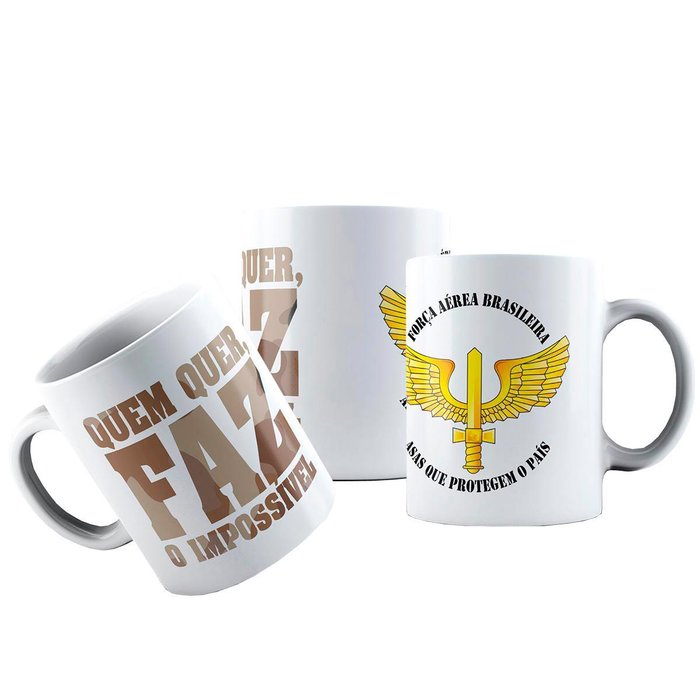 Caneca Cerâmica Brasão Asas Fab Quem Quer Faz O Impossível