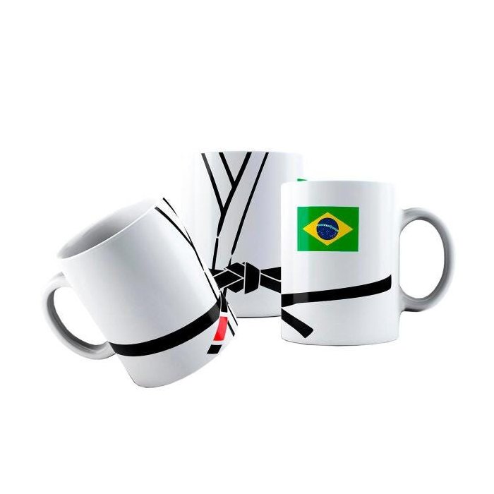 Caneca Cerâmica Jiu Jitsu Faixa Preta Bandeira Brasil Kimono