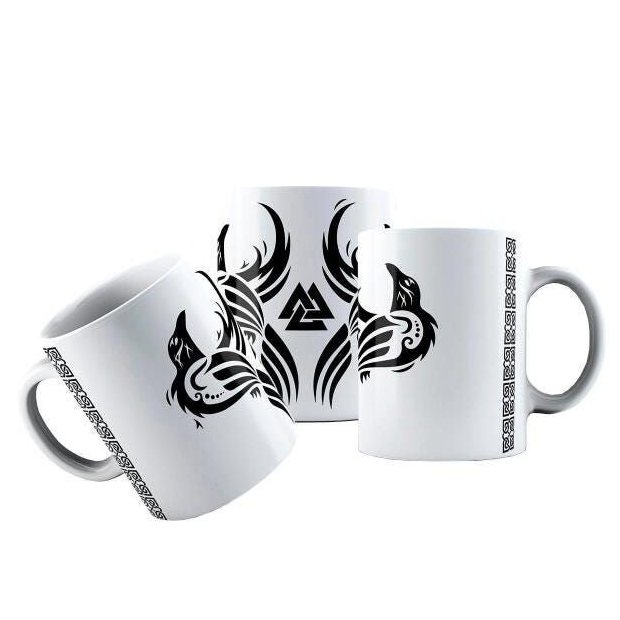 Caneca Cerâmica Símbolos Deus Odin Vikings Olho Sabedoria - Teste Vitoria Branca