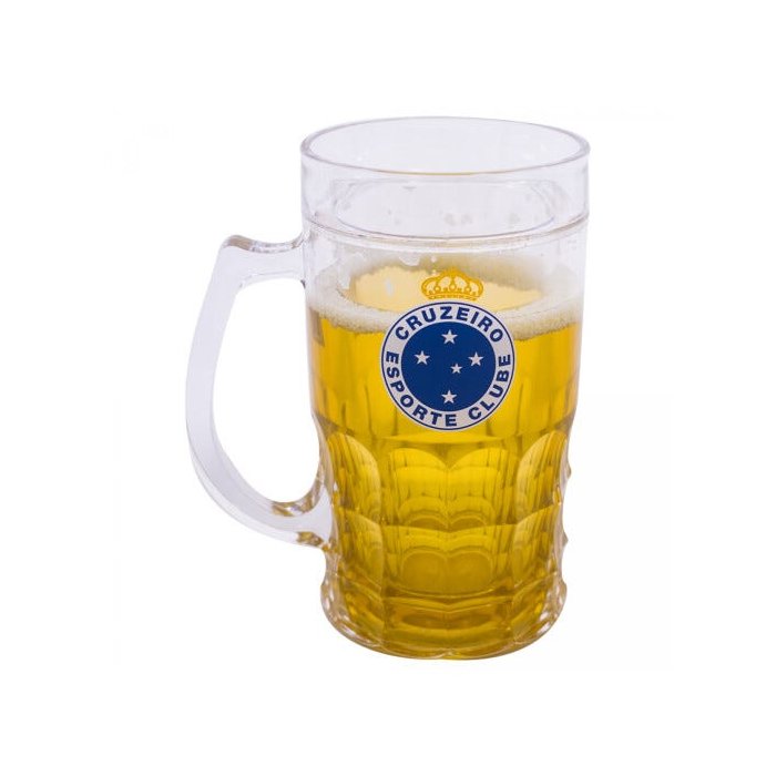 Caneca de plástico de 400 ml com brasão do seu time. Caneca possui revestimento de líquido na cor de cerveja, como se a caneca estivesse cheia de bebida. Material plástico.