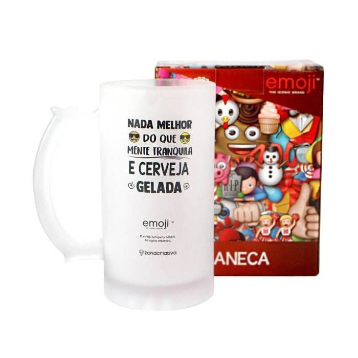 Caneca Chopp Reta Fosca Emoji Cerveja Gelada 450ml