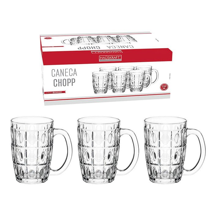 Caneca Chopp Vidro 350Ml Jogo 6 Peças Hauskraft