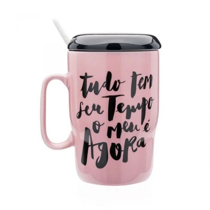 DESCRIÇÃO DO PRODUTO "Olá meninas e meninos!" Quem disse que acabou? Com mais de 5 milhões de inscritos em seu canal no YouTube, Taciele Alcolea está de volta com esta caneca com colher e tampa "Tudo tem seu tempo, o meu é agora". Toda em porcelana, a caneca é cor de rosa, a tampa é preta e a colher é branco, uma combinação e clássica e super estilosa de cores para deixar o presente na medida certa pra quem é fã da Taci, como a gente. Capacidade: 430ml. CARACTERÍSTICAS DO PRODUTO Largura: 11 cm Altura: 12.5 cm Capacidade: 430 ml Diâmetro: 8 cm Profundidade: 11 cm Matéria-prima: Porcelana IMPORTANTE SABER Contém 1 caneca com tampa e 1 colher. Lavar com água, esponja macia e detergente neutro. A caneca pode ir à lava-louças e ao micro-ondas, mas a colher e a tampa não vai ao lava-louças, nem ao micro-ondas.Teme químicos e abrasivos.