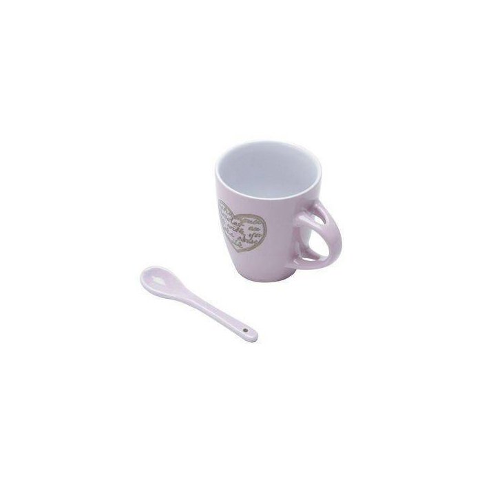 Caneca com Colher Rosa de Porcelana 200ml Bon Gourmet