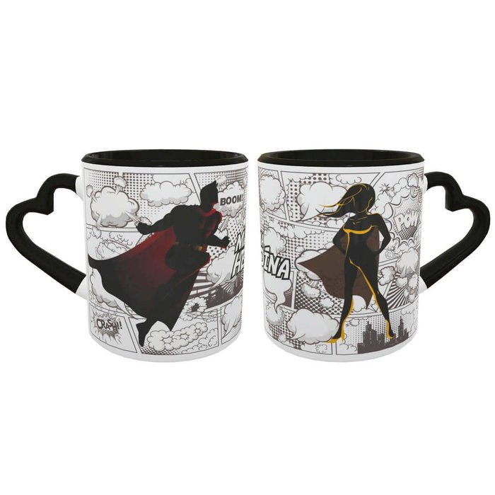 A Caneca Coração Casal Heróis Presente Criativo Namorados é uma linda opção para os casais que são heróis no dia a dia, no amor e na vida.