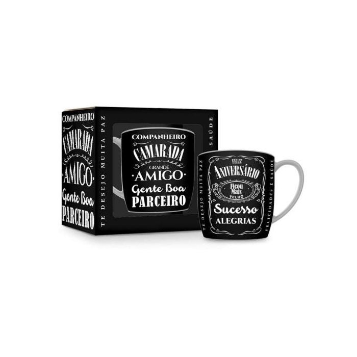 Você que está a procura de um lindo e especial presente para uma pessoa especial, você acabou de encontrar! Essa linda caneca feita em porcelana de excelente qualidade possui uma estampa semelhante ao famoso whisky Jack Daniels, porém traz o valor da amizade desejando muitas felicidades. A caneca possui capacidade para 360ml. Especificações Marca: Brasfoot Presentes. Referência do Modelo: 1919 Material/Composição: Porcelana. Capacidade: 360ml Pode ser levado(a) ao micro-ondas: Sim Pode ser lavado(a) na máquina de lava-louças: Sim Dimensões Aproximadas do Produto AxLxP (cm): 9,5 x 12 x 9 Dimensões Aproximadas da Embalagem do Produto AxLxP (cm): 14 x 17 x 10 Peso aproximado do produto: 495g Conteúdo da Embalagem: 01 - Caneca. Orientações do Fabricante: Lavar com água, sabão e esponja macia. Não utilizar produtos químicos e abrasivos.