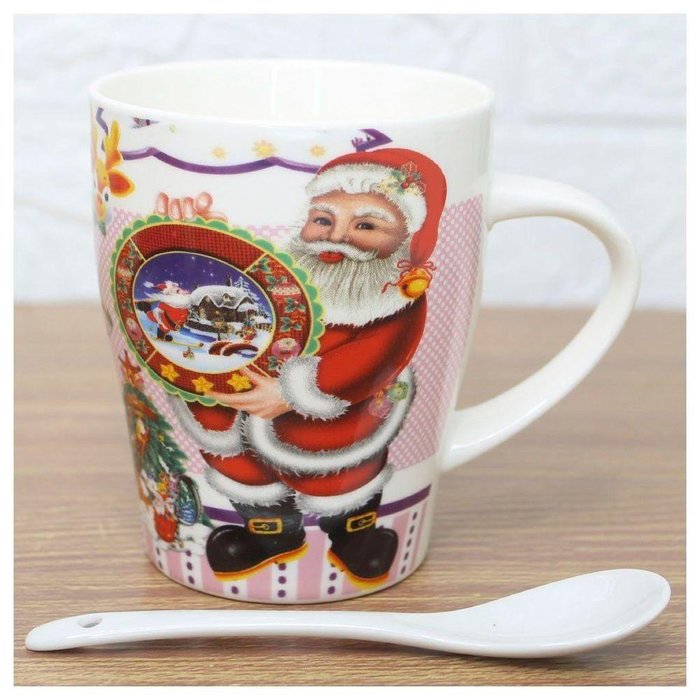 Caneca de Natal com Colher Papai Noel Cerâmica 300ml Multicor