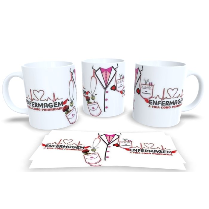 Caneca de Porcelana Branca Personalizada Profissões Enfermagem