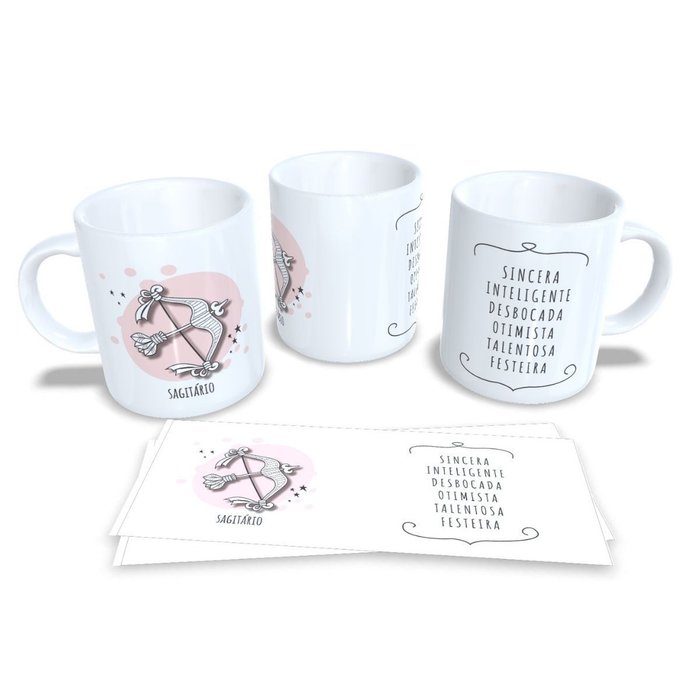 Caneca de Porcelana Signos do Zodíaco, Astrologia, Horóscopo Sagitario