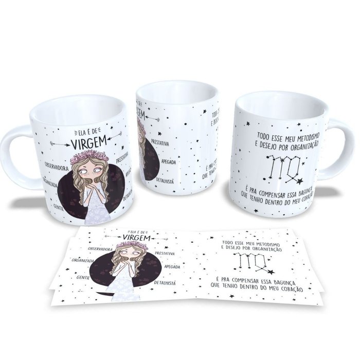 Caneca de Porcelana Signos do Zodíaco, Astrologia, Horóscopo Virgem