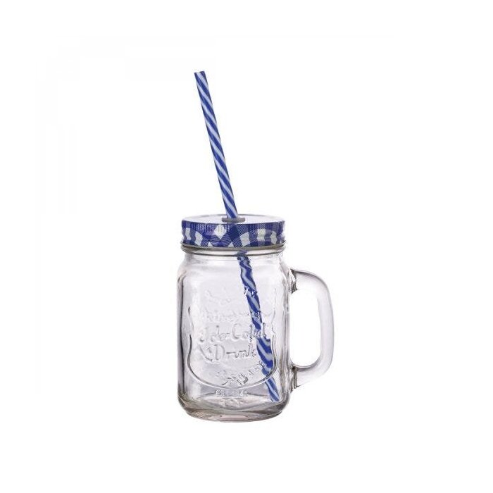 Caneca de Vidro com Tampa e Canudo Party 425ml Lyor Transparente/Azul