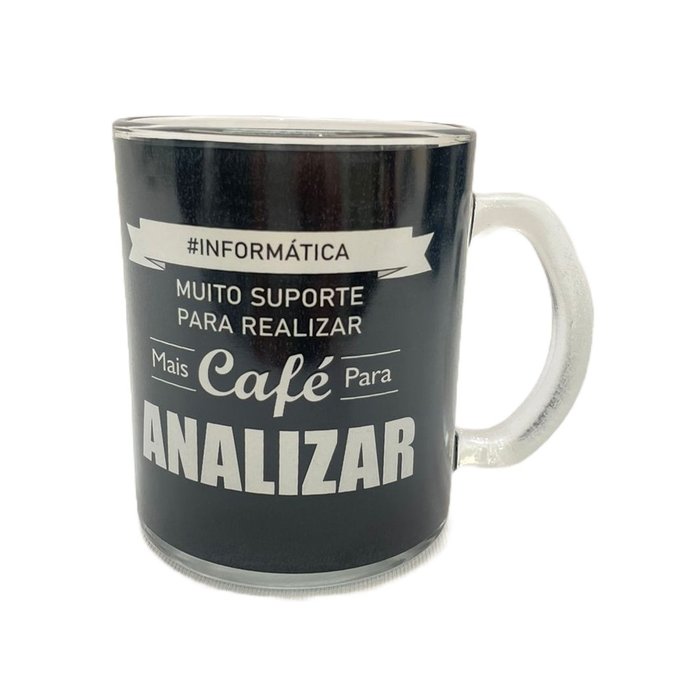 Caneca com estampa, produzida em vidro, que mantém a temperatura da bebida por muito mais tempo.