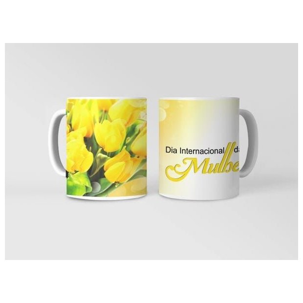 Ver imagem 1 de Caneca Ecf Dia da Mulher - Tulipas Amarelas Porcelana Branca 325ml