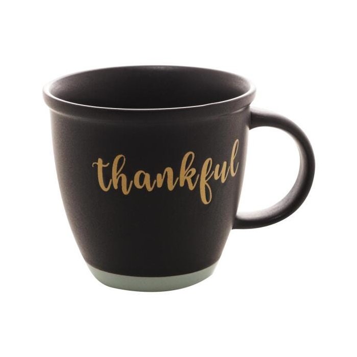 Caneca em Cerâmica Bon Gourmet Thankful Preto e Azul 380ml