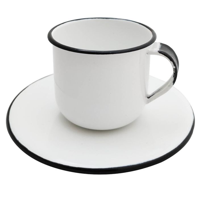 Caneca Esmaltada Xícara Com Pires Para Chá Café 150ml Branco Branco