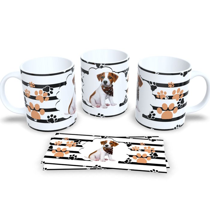 Caneca de porcelana de alto brilho, com alça e interior branca Coleção Pet.