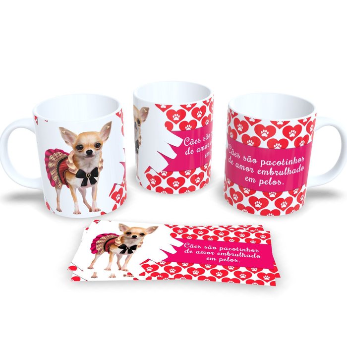 Caneca de porcelana de alto brilho, com alça e interior branca Coleção Pet.