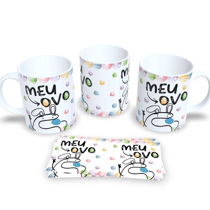 Caneca de porcelana de alto brilho, com alça e interior branca Coleção Flork Pascoa.
