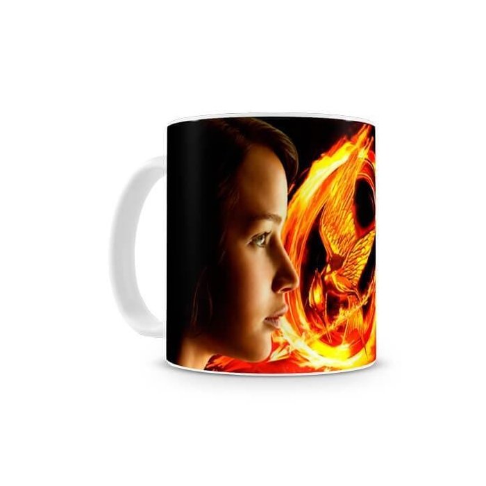 Caneca Jogos Vorazes Katniss e Petta Branco