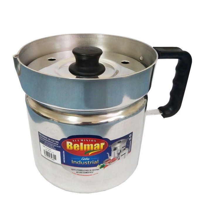 Fervedor da linha industrial Belmar Alimínios, feito em aluminio puro grosso com 3mm de espessura com tampa, muito mais resistência.5,1 Litros de capacidade. Belmar Alumínios: a 47 anos na fabricação de panelas e utensilios, rigido controle de qualidade. Medidas:Largura com o cabo: 28,5Cm.Diâmetro: 20Cm.Altura: 20Cm.