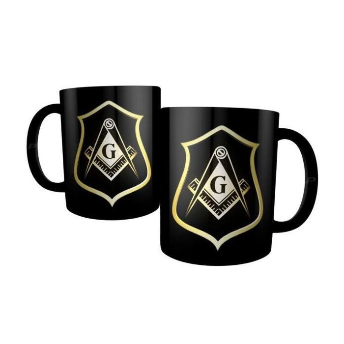 Caneca Maçonaria - Brasão Maçom Esquadro E Compasso Preta