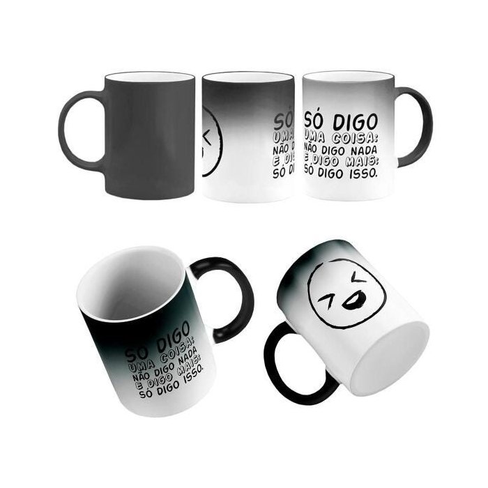 Não vamos julgar uma caneca sem bebida, não é mesmo Porque essa é uma caneca mágica O desenho é feito na superfície preta e parece invisível, mas a arte irá se revelar quando adicionado qualquer líquido quente dentro dela Pode ser qualquer bebida quente, a imagem aparecerá feito mágica