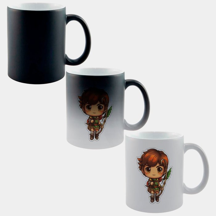 Caneca Mágica Fosca 325ml Y1 Menino Fofo Rpg Arco Flecha Preto