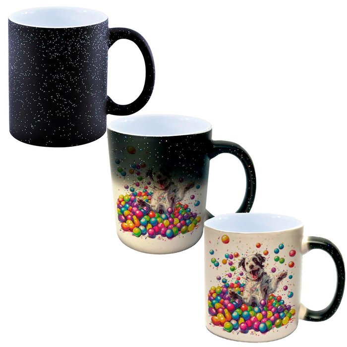 Caneca Mágica Glitter Muda de Cor Y2 Cachorro Dog Piscina Bolinha 5 Preto / Branco