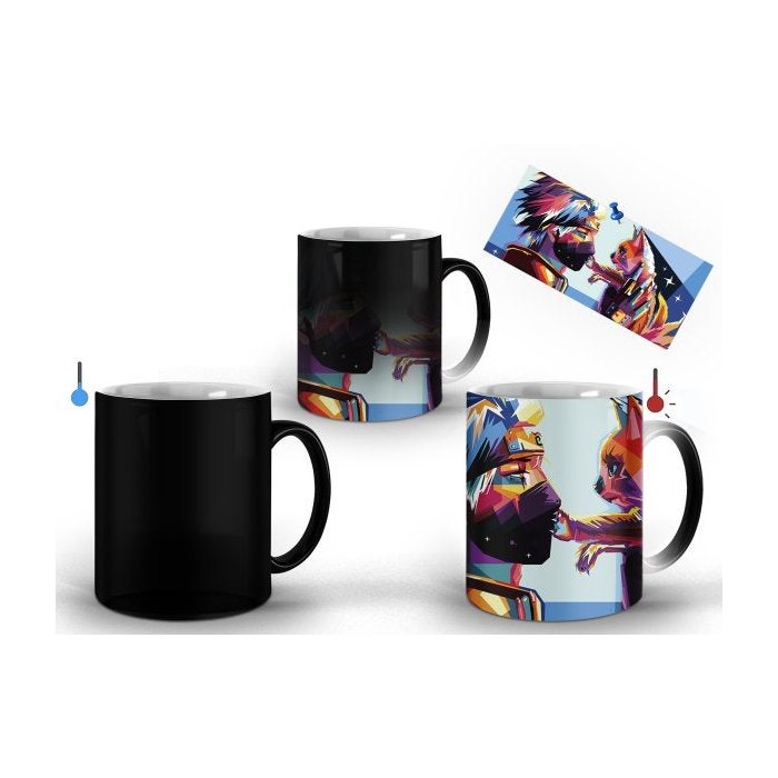Caneca Magica Termossensível Kakashi e Kurama Filhote (Anime Naruto)