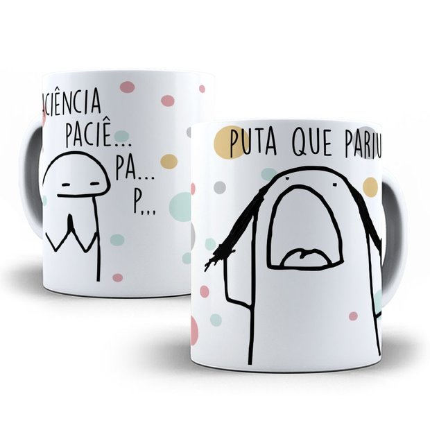 Caneca de porcelana de alto brilho, com alça e interior branca Coleção Flork Frases Engraçadas.