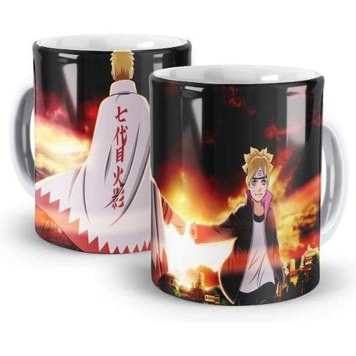 Caneca Naruto E Boruto Geek Premium Branca Branca
