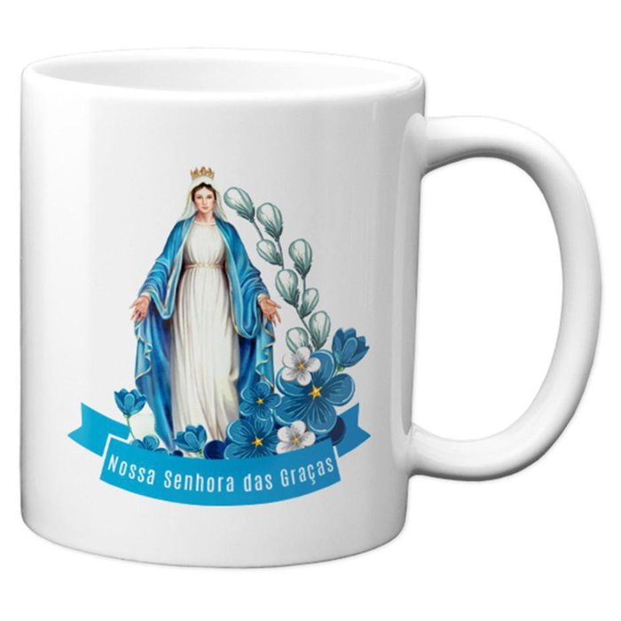Caneca Nossa Senhora Das Graças Floral Presente Católico