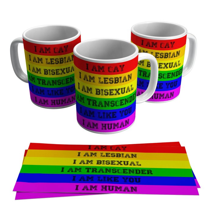 Caneca Orgulho Gay Bandeira Cores Eu Sou Humano