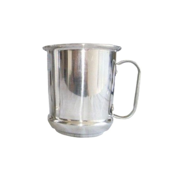 Caneca de alumínio térmica para beber chopp, contendo água dentro do recipiente de forma que proporciona o líquido se manter gelado por mais tempo, com alça de alumínio, litragem de 500ml