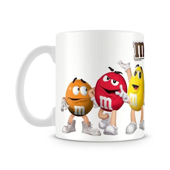Caneca personalizada de porcelana de alto brilho com estampa dosM&Ms.