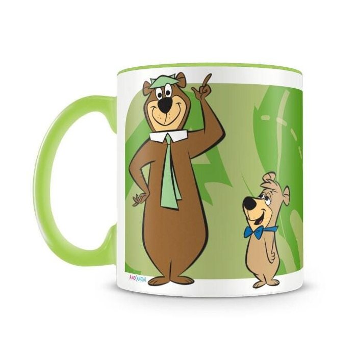 Caneca personalizada de porcelana de alto brilho interior e alça verde com linda estampa do Zé Colmeia.