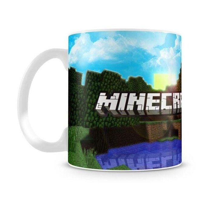 Caneca personalizada de porcelana de alto brilho com estampa do game Minecraft. Uma super caneca para os jogadores nerd.