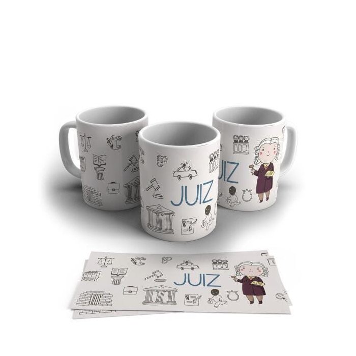 Caneca personalizada de porcelana com qualidade fotográfica de alto brilho, com o tema: Profissões - Juiz.