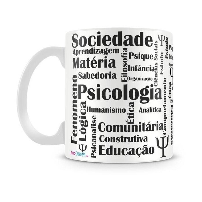 Caneca personalizada de porcelana de alto brilho com estampa do profissional da área de Psicologia.