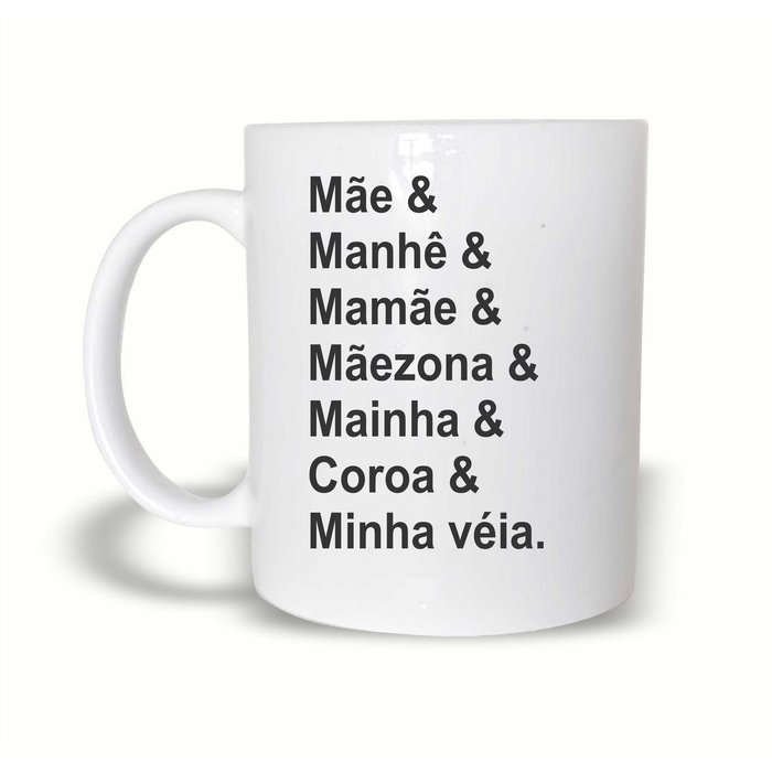 Caneca polímero - mãe, manhê, mamãe, mãezona, mainha, coroa, minha véia - branca